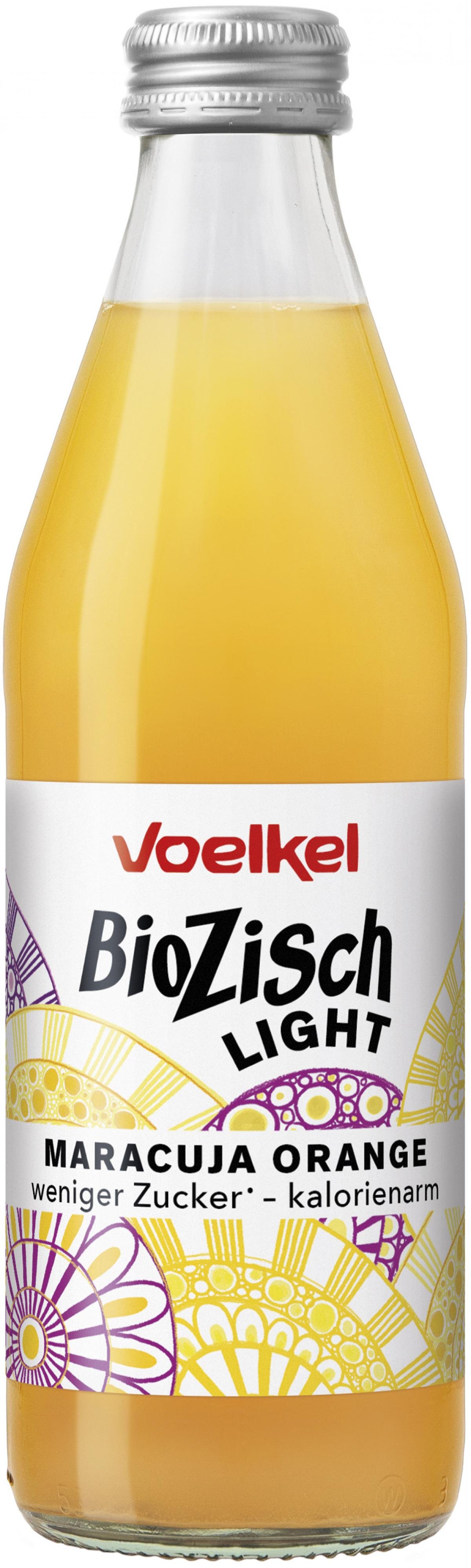 Erfrisch dich leicht: mit dem exotisch-fruchtigen Geschmack von ökologisch angebauten Maracujas und Orangen, kombiniert mit prickelndem Mineralwasser aus der Voelkel eigenen Quelle. BioZisch Light Maracuja Orange enthält weniger Zucker als herkömmliche Limonaden und ist mit nur 20 kcal/100 ml kalorienarm.