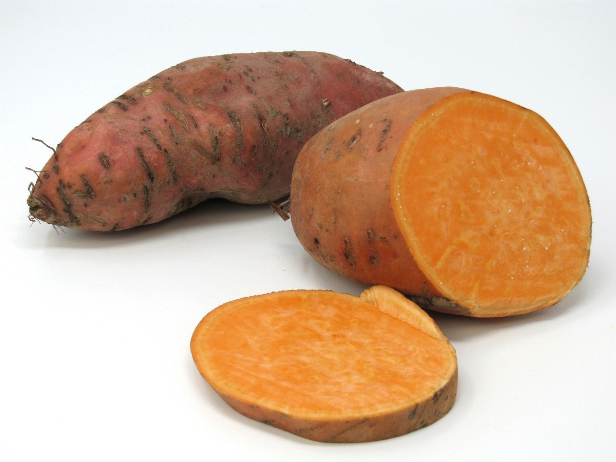 Die aus Südamerika stammende Süßkartoffel, bevorzugt tropisches Klima. Seit einigen Jahren zählt sie zum nährstoffreichsten Gemüse, da sie bei regelmäßigem Verzehr positive Auswirkungen auf die Gesundheit habe. Sie gehört, anders als man vermuten würde nicht zu den Nachtschattengewächsen, sondern zu der Gruppe der Windengewächse. Sie ist damit also nicht verwandt mit der Kartoffel. Es gibt sie in orange und in weiß.
