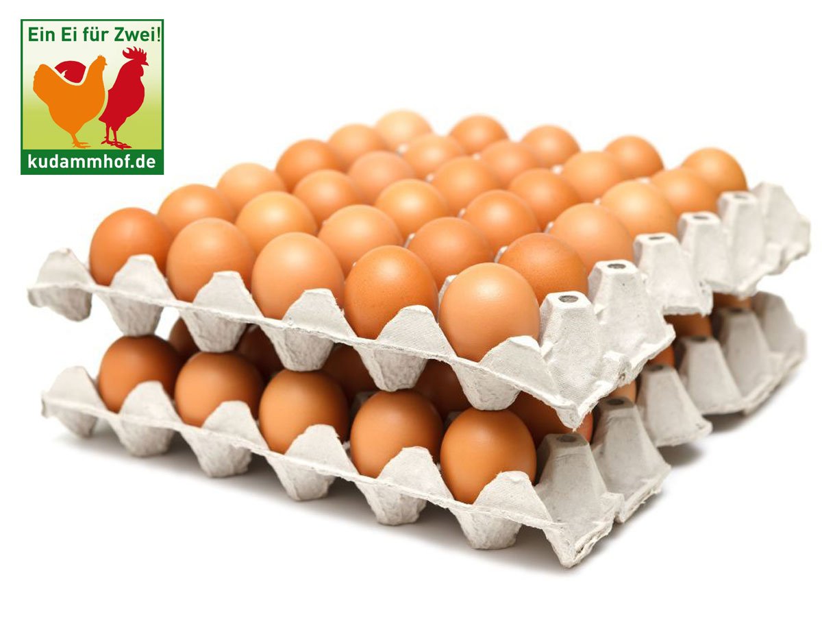 Jetzt kommen die Eier der Schwestern ins Spiel: Nur durch einen höheren Erlös aus den Eiern lässt sich das Leben der Brüder auf einer gesunden Basis finanzieren. Mit dem Kauf der Eier vom Kudammhof unterstützen Sie zwei Leben.