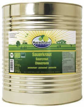 In annähernd gleichmäßige Streifen geschnittener biologischer Weißkohl, aus dem Sauerkraut durch natürliche Milchsäuregärung nach Zusatz von Meersalz entstanden ist.
