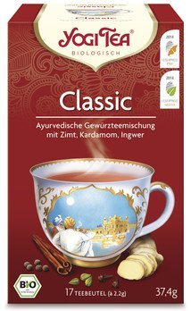 Der Gewürz-Tee Yogi Tea® Classic Bio ist eine wunderbare Mischung aus süßem Zimt, Kardamom, würzigem Ingwer, Nelken und Pfeffer und inspirierte Generationen von Yogis sowie die Marke YOGI TEA® und legte den Grundstein für die Vielfalt unserer ayurvedischen Teemischungen. Am besten gesüßt und mit Milch oder einer veganen Milchvariante genießen.