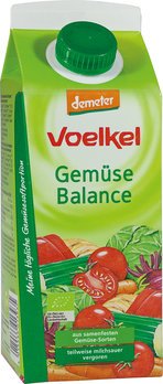 Voelkel Gemüse Balance ist reich an Vitamin A und eine Kalium-Quelle und deckt mit 220 µg/ 100 ml 27 % des empfohlenen Tagesbedarfs an Vitamin A und mit 236 mg / 100 ml 12 % des empfohlenen Tagesbedarfs an Kalium. Vitamin A trägt zum Erhalt normaler Sehkraft und Kalium zur Aufrechterhaltung eines normalen Blutdrucks bei.
