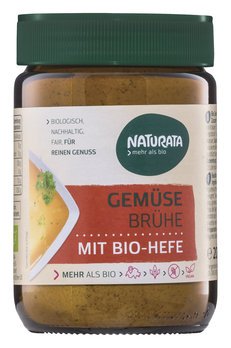 Die Gemüsebrühe mit Bio-Hefe besticht durch eine hochwertige Rezeptur mit Hefeextrakt aus biologischem Anbau. Die Würzkraft stammt von Bio-Gemüse und Soja. Die Brühe wird ohne den Zusatz von Zucker und Palmöl hergestellt.