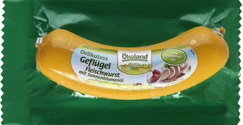 Die Ökoland Geflügel-Fleischwurst wird aus bestem Bio Puten- und Hähnchenfleisch hergestellt und in Delikatess Qualität angeboten. Dank einer ausgefeilten Rezeptur unter Verwendung von Sonnenblumenöl und einem hohen Fleischanteil schmeckt sie so ausgezeichnet.