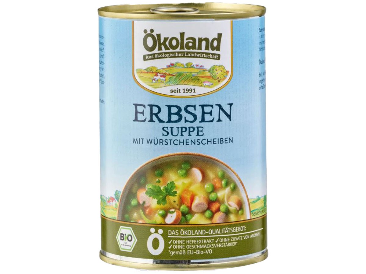 Erbsen gehören zu den ältesten Kulturpflanzen der Menschheit, sie haben ihren Ursprung im Orient. Erbsen sind ein ganz besonderes Gemüse – mit ihnen liefert unsere Ökoland Erbsensuppe wertvolles Eiweiß! Unsere Erbsen werden schonend zubereitet, gemeinsam mit typischem Suppengemüse und traditionellen Gewürzen perfekt abgeschmeckt. Und dann geben wir – für den herrlich herzhaften Geschmack – unsere original Ökoland Würstchenscheiben dazu!