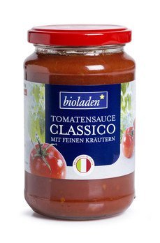 Tomaten* (91%), Zwiebeln*, Olivenöl extra vergine*, Basilikum*, Meersalz, Rohrohrzucker*, Majoran*, Oregano*