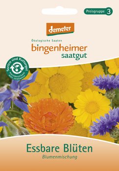unte, einjährige Mischung aus Ringelblume, Borretsch, Kornblume und Speisechrysantheme Die Blüten sind essbar und auch für Insekten attraktiv. Der Anbau in Pflanzgefäßen auf Balkon und Terrasse ist problemlos möglich. Die regelmäßige Ernte fördert die Bildung weiterer Blüten.