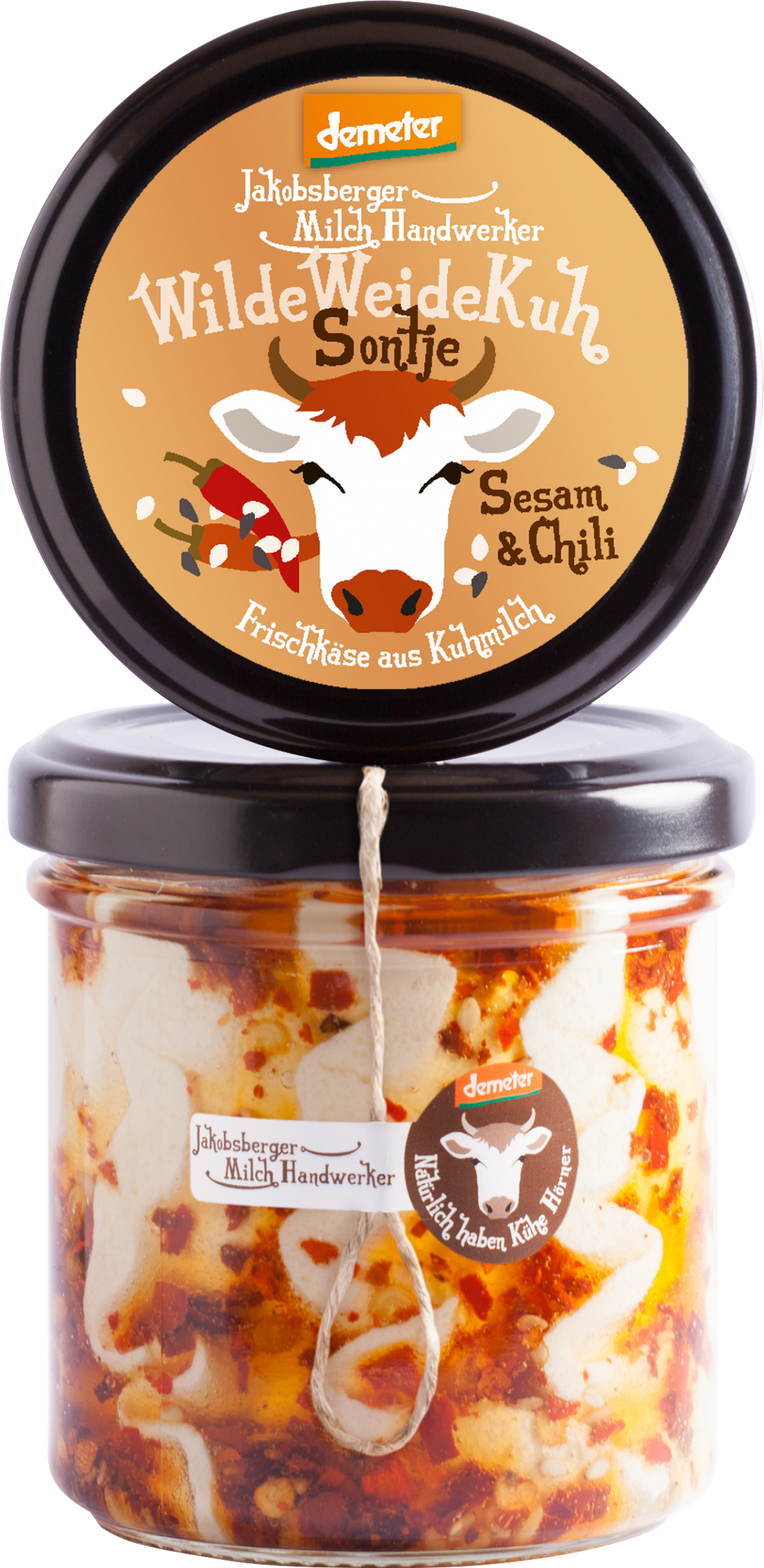 Sontje mit Sesam und Chili ist ein cremig milder Frischkäse auf der hofeigenen Käserei. In schonenender handwerklicher Verarbeitung hergestellt auf dem Bauernhof.