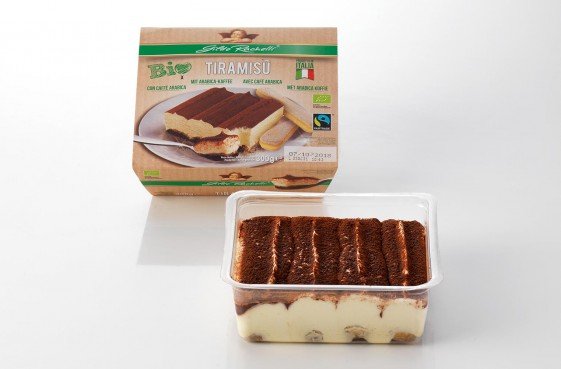 Dessert aus Creme mit Mascarponefrischkäse (77%), Kaffeesoße (11%) und Löffelbiskuit (11%) bestreut mit Kakao (1%) - Zutaten: Sahne*, 17% Mascarpone* (Sahne*, Säureregulator: Milchsäure), Vollmilch*, Rohrohrzucker*, Löffelbiskuit* (Weizenmehl*, Zucker*, Eier*, Backtriebmittel: Natriumcarbonate, Ammoniumcarbonate, Salz), Wasser, Eier*, Magermilchpulver*, Maltodextrin*, Ethylalkohol*, Tapiokastärke*, Kakaopulver*, 0,9% flüssiger Kaffee-Extrakt*, Verdickungsmittel: Agar-Agar*. *Zutaten aus kontrolliert biologischem anbau. Produkt enthält Alkohol. Kann Schalenfrüchten, Soja und Senf enthalten. Mindestens haltbar bis: siehe Packungsoberseite. Im Gefrierschrank aufbewahren bei einer Temperatur von max -18°C. Lassen Sie das Produkt 3-4 Stunden im Kühlschrank auftauen.