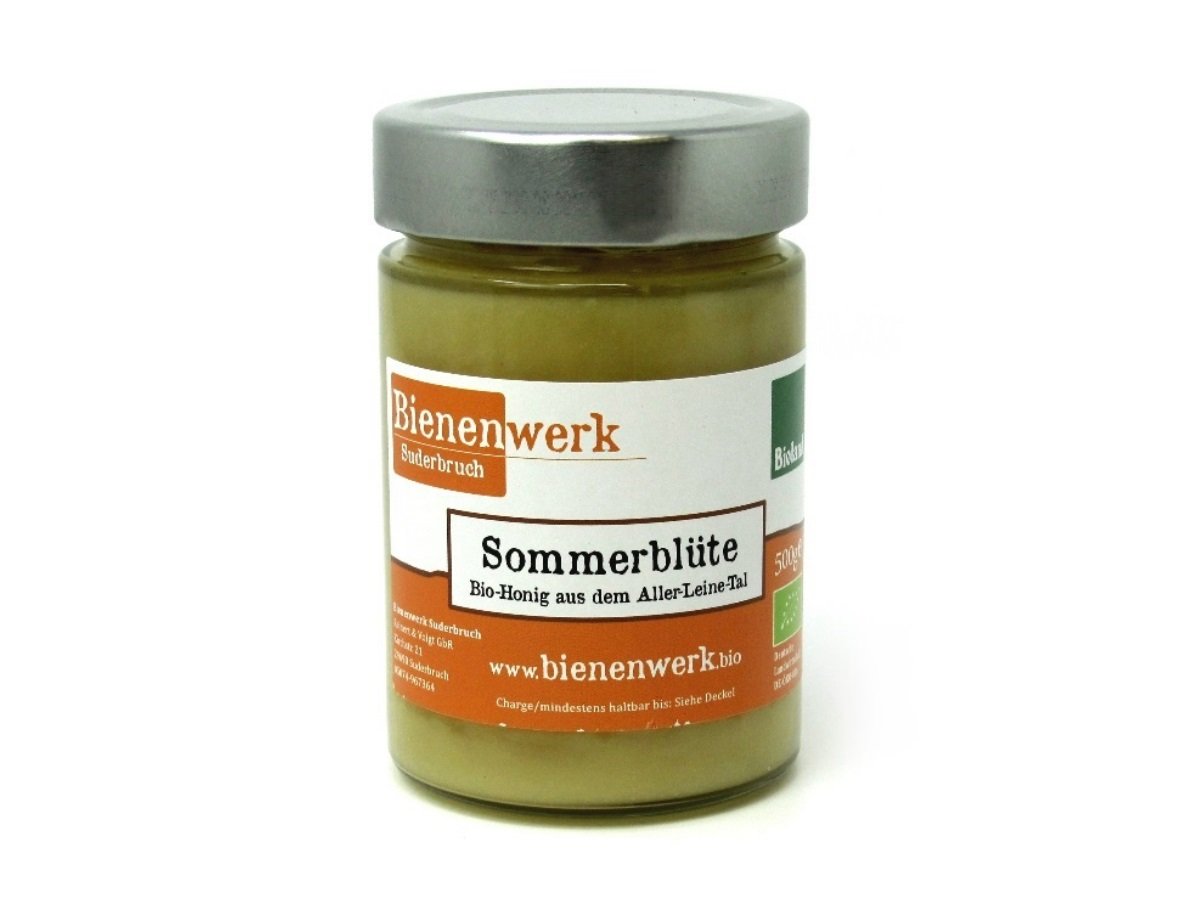 Unser Sommerblüten-Honig besitzt dieses Jahr auch einen Anteil Lindenblütenhonig. Aber auch Kornblume und Goldrute ist zu finden. Die korrekte Bezeichnung ist also Sommerblüte mit Linde. Ein etwas herberer Honig, feincremig und sicher eine Geschmacksoffenbarung auf dem Frühstücksbrötchen. Seine Farbe schimmert etwas grün, fluoreszierend.