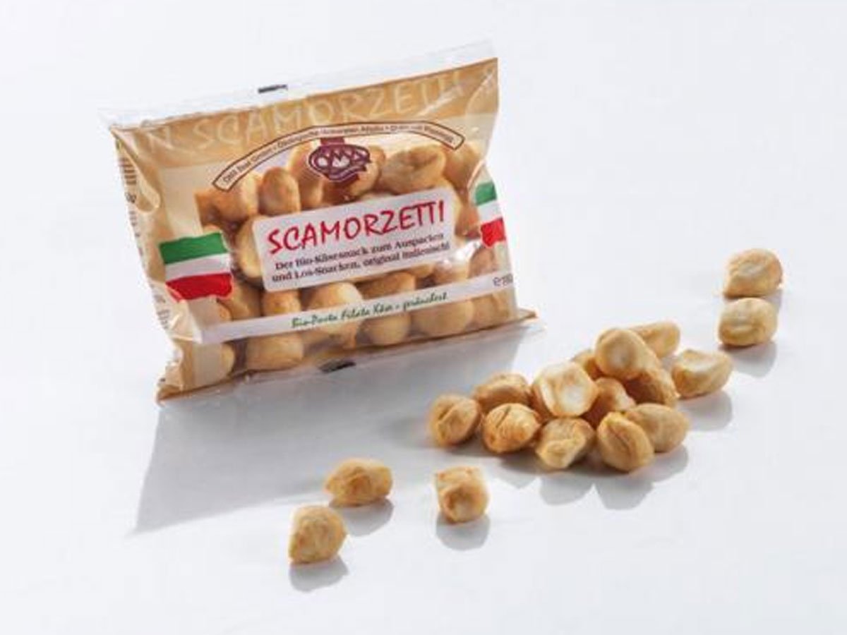 ÖMA Scamorzetti Affumicate - original italienische Bio-Räucherperlen aus dem Veneto - sind der ideale Frische-Snack für zwischendurch. Das zarte Raucharoma verleiht den kleinen Perlen die besondere Note, die sie so unwiderstehlich machen. Kombiniert mit dem typisch frischen Mozzarella-Geschmack sind sie das ideale Topping für alle Salate und unverzichtbar bei jeder Party - einfach auspacken und los-snacken! Im SB-Kühlregal präsentieren sich die Scamorzetti als überzeugender Zugreifartikel und im eigenen Kühlschrank als Genussgarant für Ihre Gäste.
