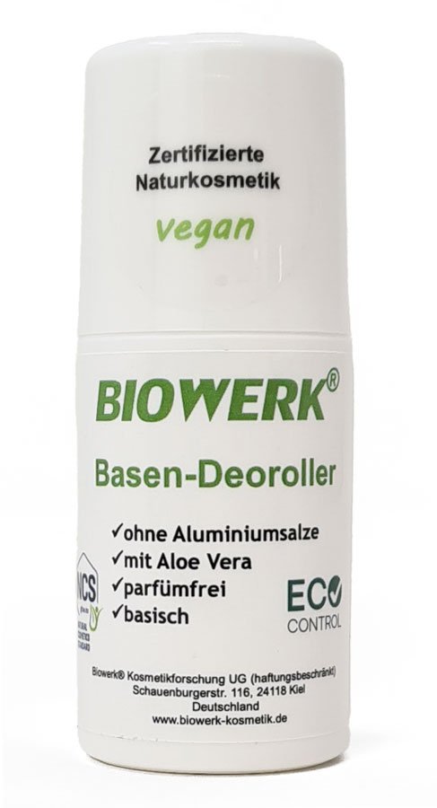 Der vegane Biowerk® Basen-Deoroller ist ein innovatives, aluminiumfreies, sowie duftneutrales Deo der neuesten Generation, das vor allem für Menschen mit häufigem Schweissgeruchproblem geeignet ist. Es enthält keine Duftstoffe, ätherische Öle sowie geruchsüberdeckende Komponenten und bietet auch Duftstoff-Allergikern eine sehr gute Alternative zu herkömmlichen Deoprodukten.