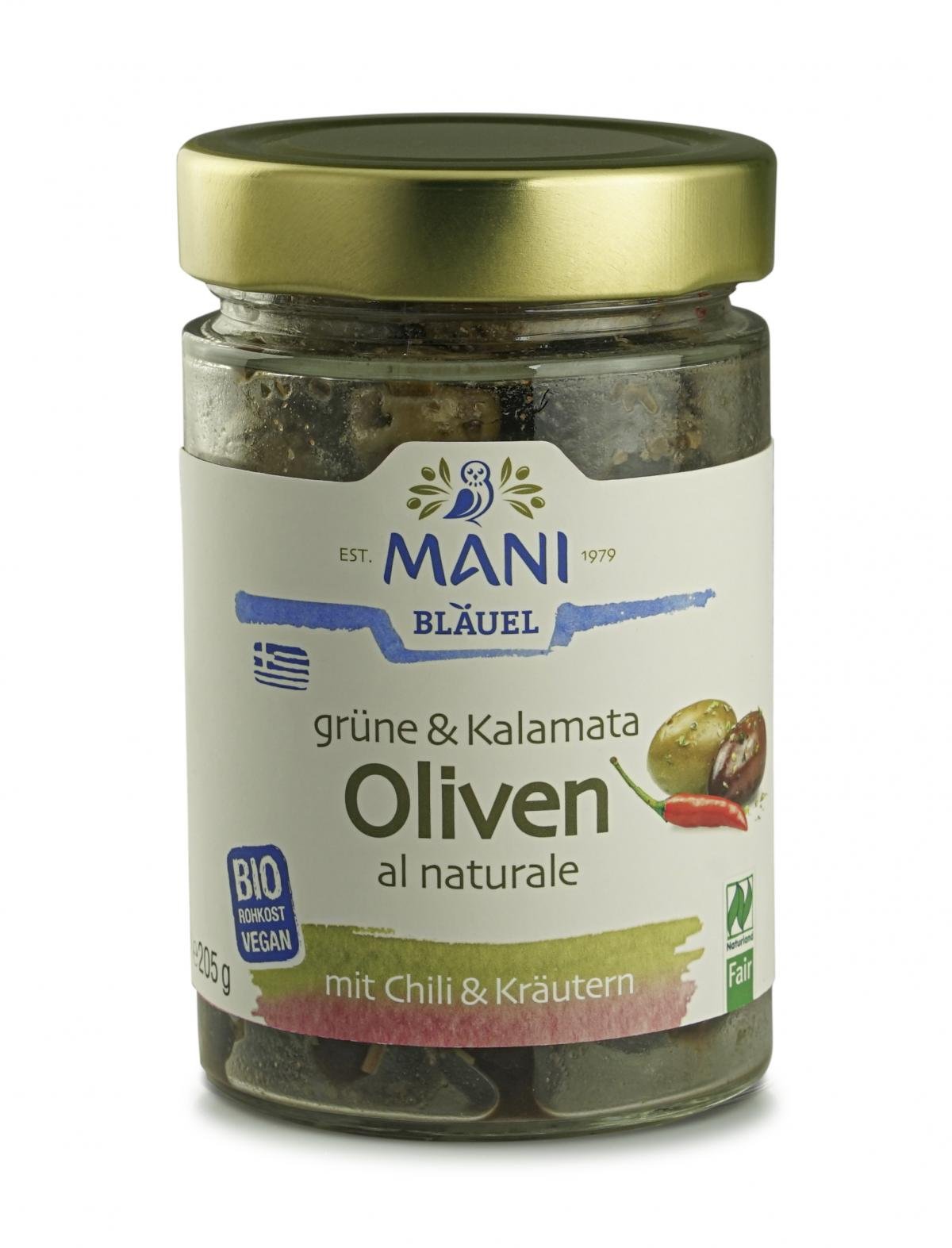 Grüne & Kalamata Oliven mit Chili & Kräutern