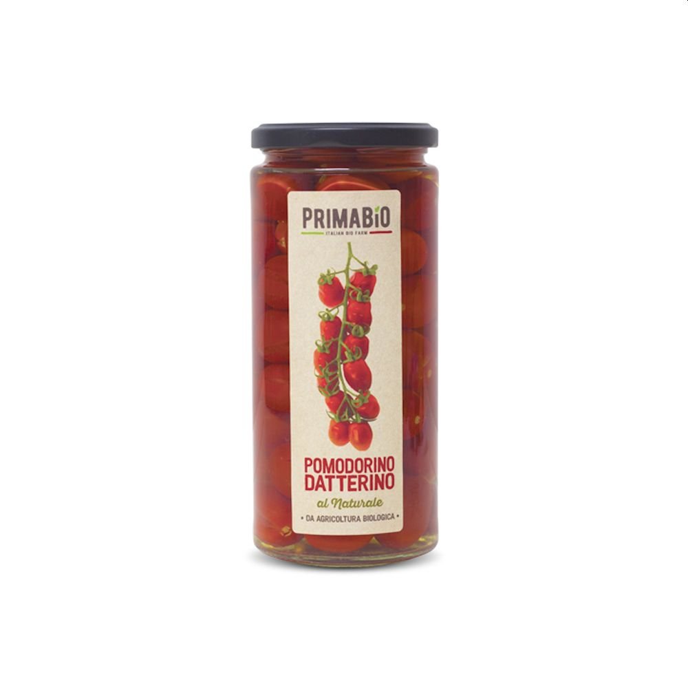 Für die naturbelassenen Datteltomaten von von Prima Bio wird die besonders aromatische Sorte „Quorum“ verarbeitet. In den Monaten Juli und August werden die feuerroten Früchte im optimalen Reifezustand von Hand geerntet. Um den Geschmack, den Duft und die Nährstoffe zu bewahren, werden die Früchte noch am Tag der Ernte verarbeitet. Nach der Wäsche und Auswahl, werden die Früchte roh mit Wasser abgefüllt.