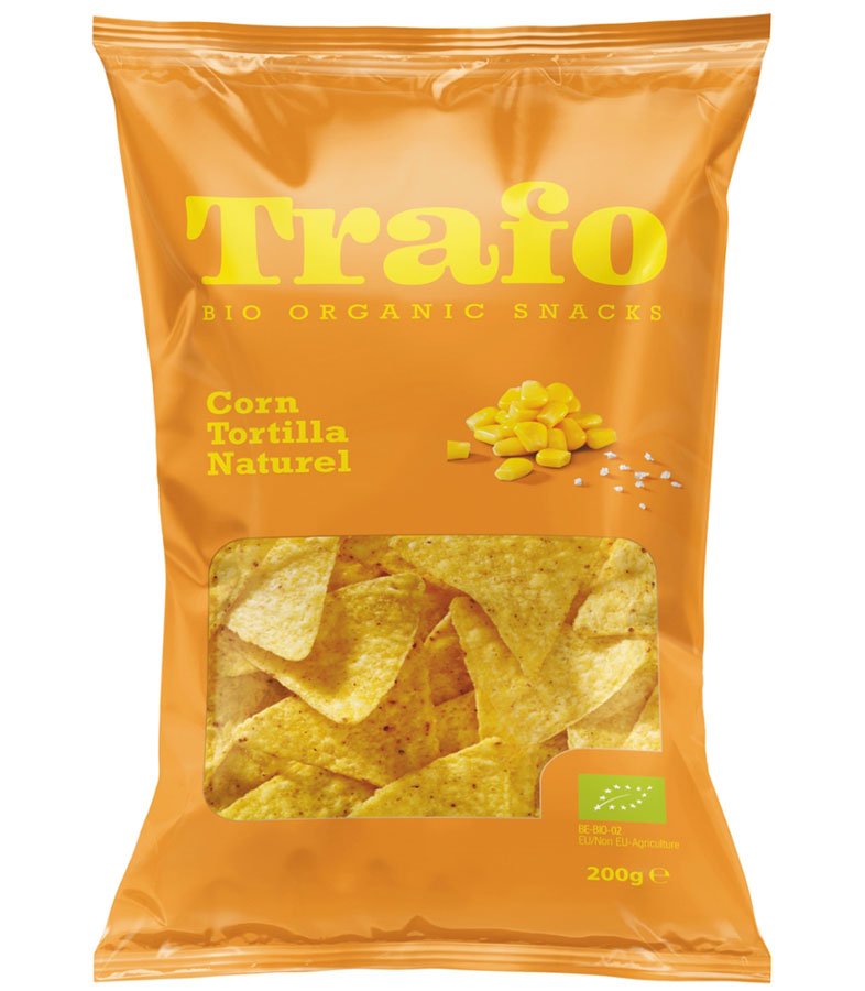 Trafo Tortilla Naturel sind eine leckere Knabberei auf Maisbasis und mit Meersalz verfeinert
