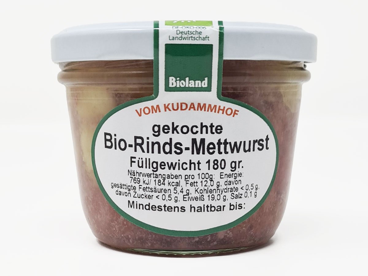Diese leckere Dosenwurst kommt regional vom Kudammhof. Er hält neben seinen Legehennen auch Rinder auf den Weiden rund um Adelheidsdorf bei Celle. Die Tiere wachsen langsam auf, mit viel eigenem Rauhfutter und Weidegang. Die Dosen-Wurst wird handwerklich hergestellt und es wird weitgehend auf Zusatzstoffe verzichtet.