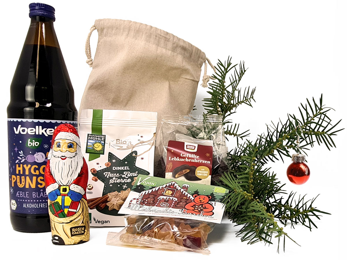 Mit unserem liebevoll gefüllten Nikolaus-Sack starten Sie genussvoll in die schönste Zeit des Jahres. Drinnen wartet pure Adventsstimmung: Wärmen Sie sich mit einem gemütlichen Hygge Punsch, knuspern Sie die himmlisch aromatischen Dinkel-Nuss-Zimt-Sterne und genießen Sie zartschmelzende gefüllte Lebkuchenherzen, die nach Kindheit und Weihnachtsmarkt schmecken. Für alle, die es tierisch süß mögen, sorgen unsere veganen Weihnachtsbärchen für fröhliche Knuscher-Momente – ganz ohne schlechtes Gewissen. Und als krönender Höhepunkt wartet ein Schoko-Nikolaus, der jedes Herz zum Schmelzen bringt.