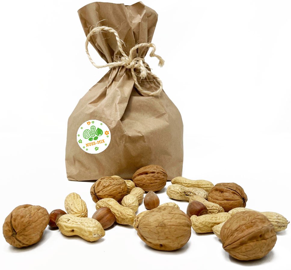 Nussmix-Tüte (Wal-, Erd-, Haselnüsse) : 200g Walnüsse, 150g Erdnüsse, 100g Haselnüsse.